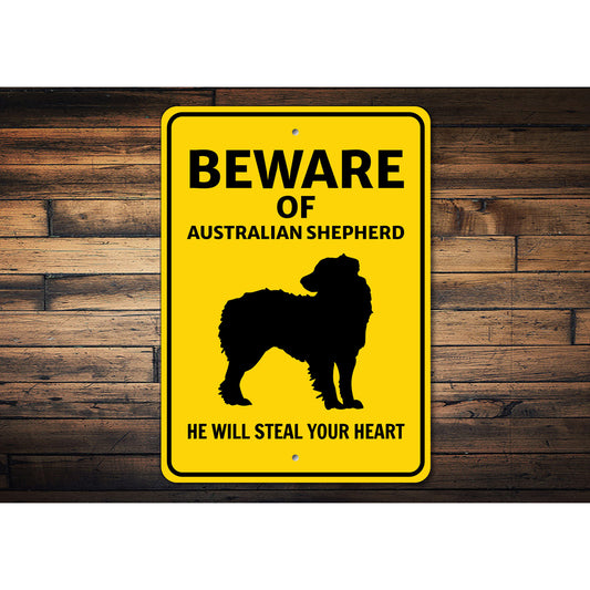 Australian Shepherd Dog Beware He Will Steal Your Heart K9 Sign