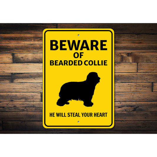 Bearded Collie Dog Beware He Will Steal Your Heart K9 Sign