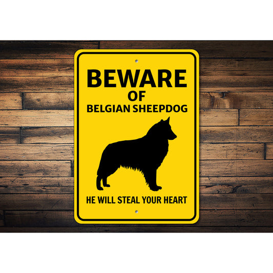 Belgian Sheepdog Beware He Will Steal Your Heart K9 Sign