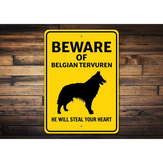 Belgian Tervuren Dog Beware He Will Steal Your Heart K9 Sign
