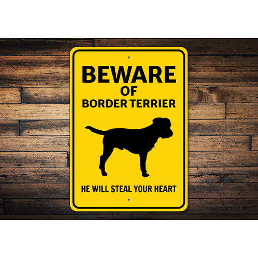 Border Terrier Dog Beware He Will Steal Your Heart K9 Sign