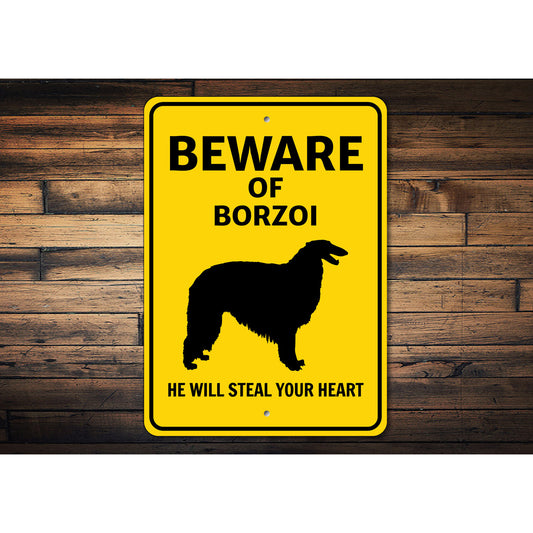 Borzoi Dog Beware He Will Steal Your Heart K9 Sign