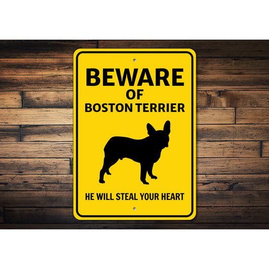 Boston Terrier Dog Beware He Will Steal Your Heart K9 Sign