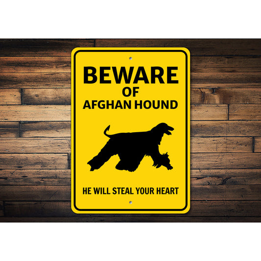 Afghan Hound Dog Beware He Will Steal Your Heart K9 Sign