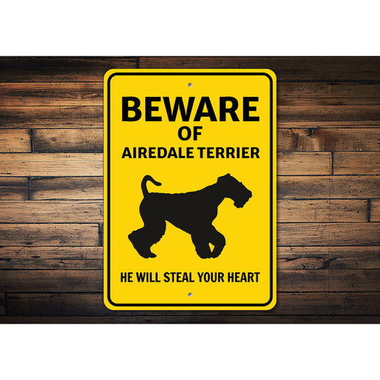 Airedale Terrier Dog Beware He Will Steal Your Heart K9 Sign