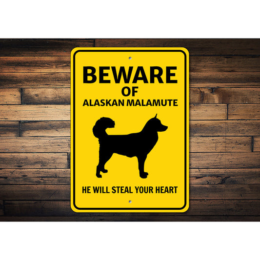Alaskan Malamute Dog Beware He Will Steal Your Heart K9 Sign