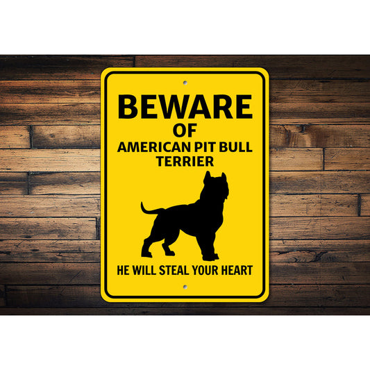 American Pit Bull Terrier Dog Beware He Will Steal Your Heart K9 Sign