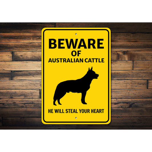 Australian Cattle Dog Beware He Will Steal Your Heart K9 Sign
