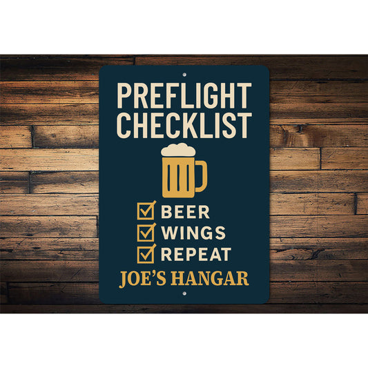 Custom Hangar Preflight Checklist Beer Wings Repeat Sign
