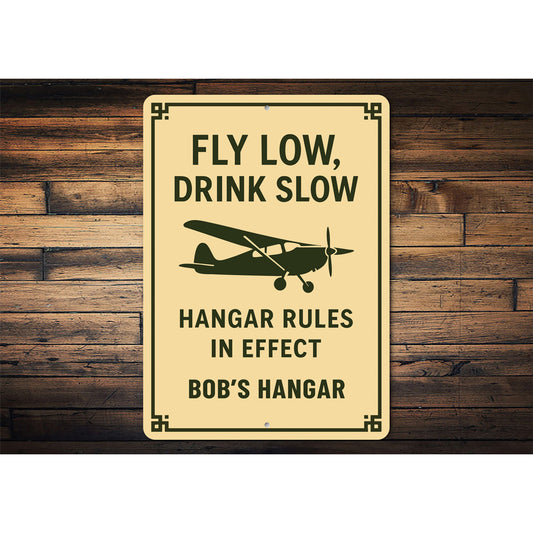 Personalized Hangar Fly Low Drink Slow Rules In Effect Sign