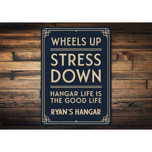 Personalized Hangar Wheels Up Stress Down Good Life Sign