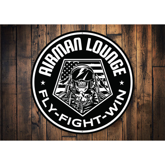 Airman Lounge Fly Fight Win USA Round Sign