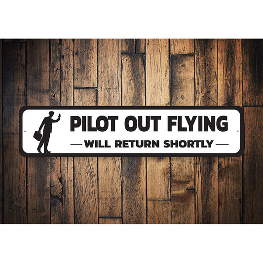Pilot Out Flying Metal Sign