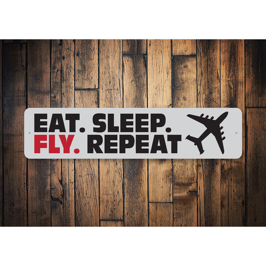 Eat Sleep Fly Repeat Metal Sign