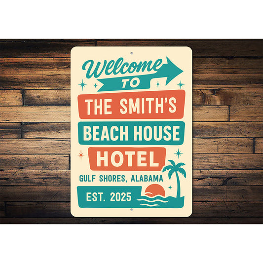 Retro Beach Hotel Metal Sign Personalized Gulf Shores Decor