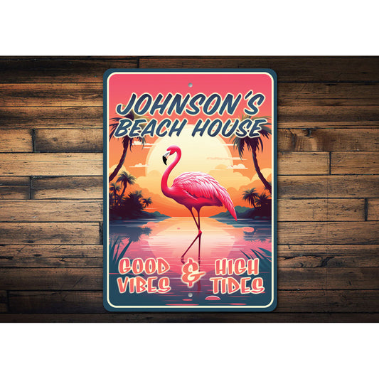 Personalized Flamingo Beach House Good Vibes Sign