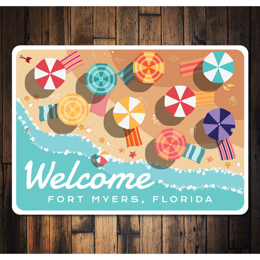 Welcome Fort Myers Florida Beach Umbrella Sign