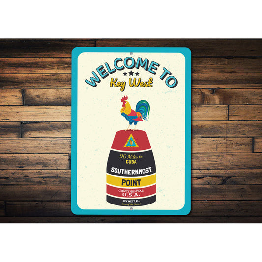 Key West Est. Year Metal Sign, Rooster Bouy Beach Metal Sign