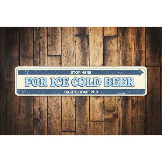 Stop Here Ice Cold Beer Metal Sign
