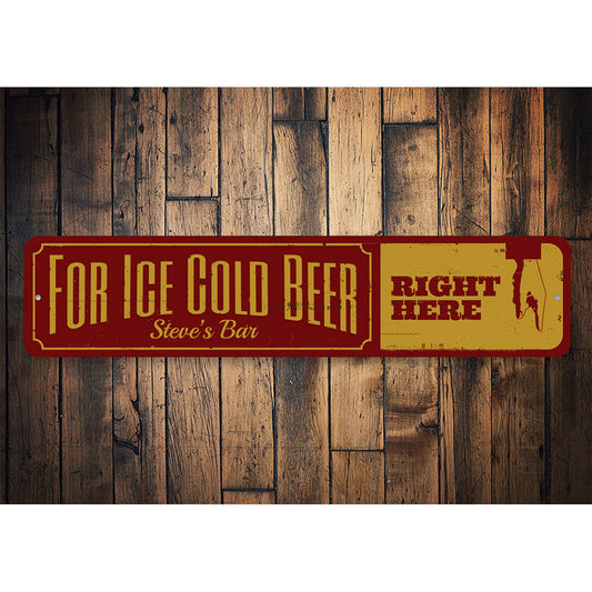 Ice Cold Beer Right Here Metal Sign