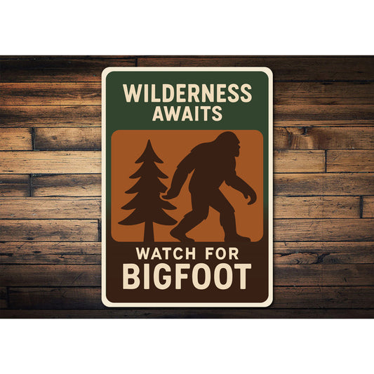 Wilderness Awaits Watch for Bigfoot Aluminum Decor Sign