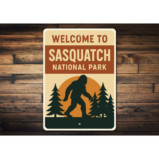 Welcome to Sasquatch National Park Aluminum Bigfoot Sign