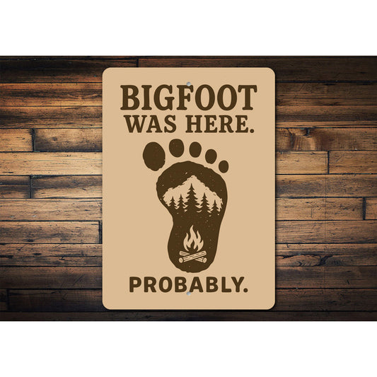 Bigfoot Was Here Probably Humorous Metal Wall Sign