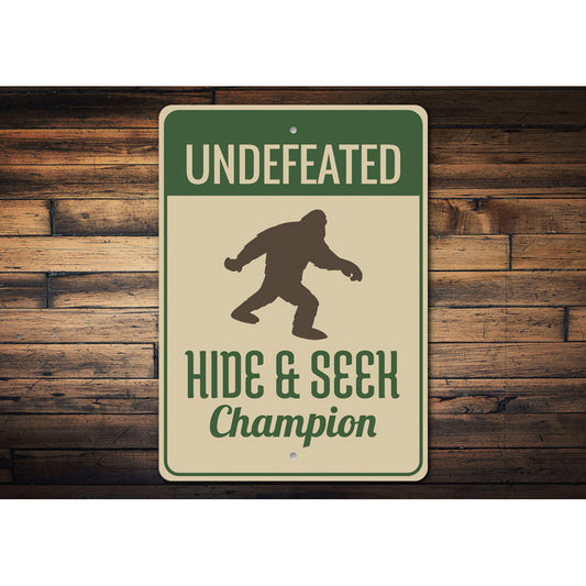Undefeated Hide and Seek Bigfoot Metal Sign