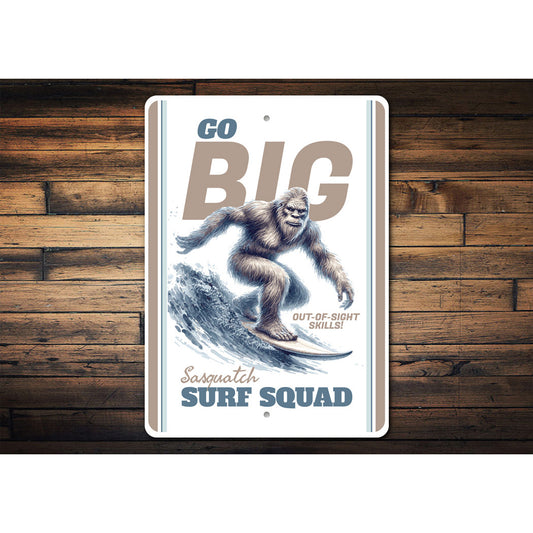 Sasquatch Surf Squad Go Big Foot Surfing Sign