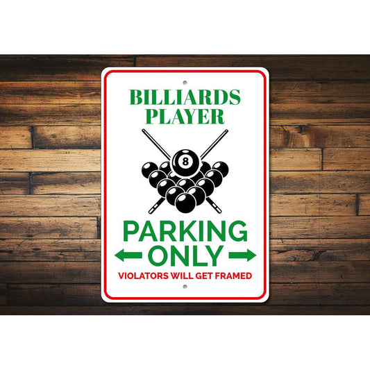 Billiards Player Parking Metal Sign