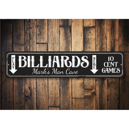 Play Billiards Here Metal Sign