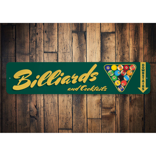 Billiards And Cocktails Downstairs Sign