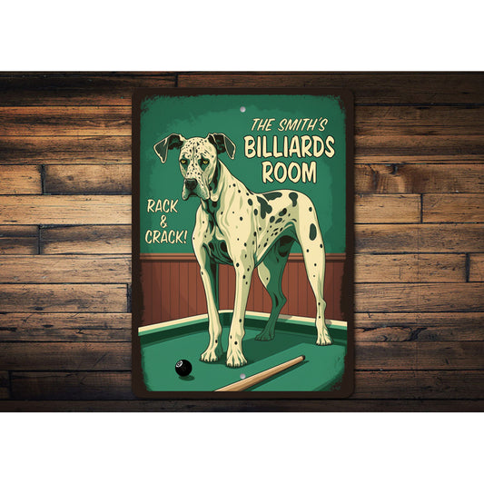 Custom Family Great Dane Billiards Rack And Crack Sign