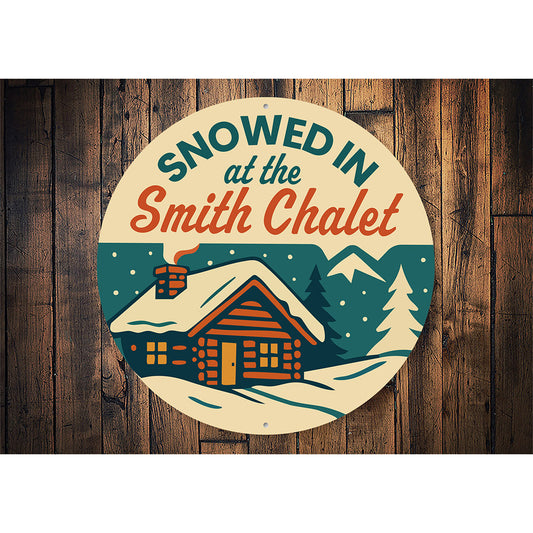Vintage Snowed In Chalet Personalized Aluminum Sign