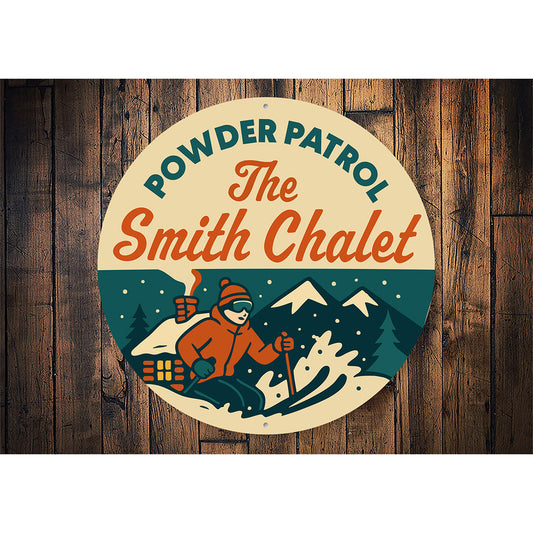 Vintage Powder Patrol Aluminum Sign Personalised Chalet