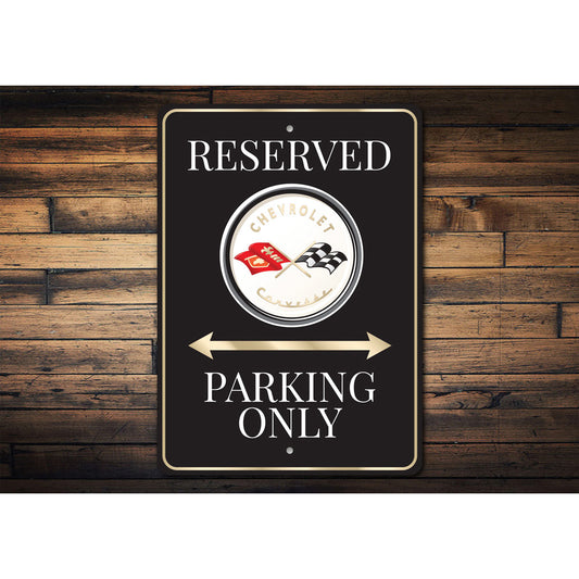 Chevrolet Corvette Logo Badge Reserved Parking Only Sign