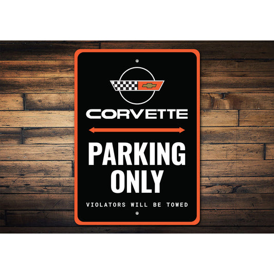 Chevy Corvette Parking Only Violators Will Be Towed Sign