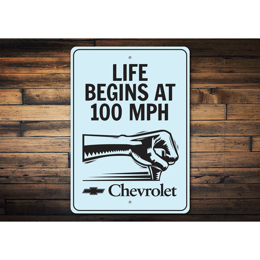 Life Begins At 100 MPH Chevrolet Decor Speedster Metal Sign