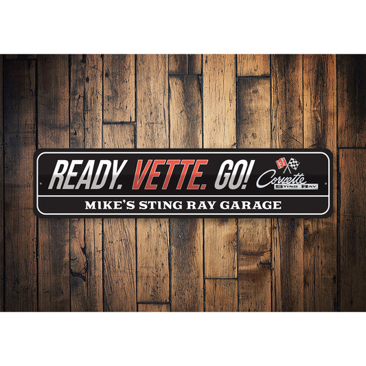 Ready Vette Go Garage Chevy Corvette Metal Sign