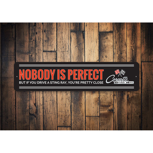 Nobody Is Perfect Chevy Corvette Metal Sign