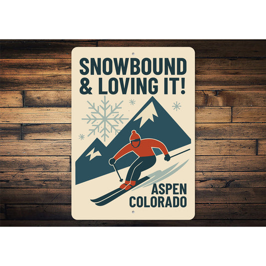 Aspen Colorado Snowbound And Loving It Aluminum Sign