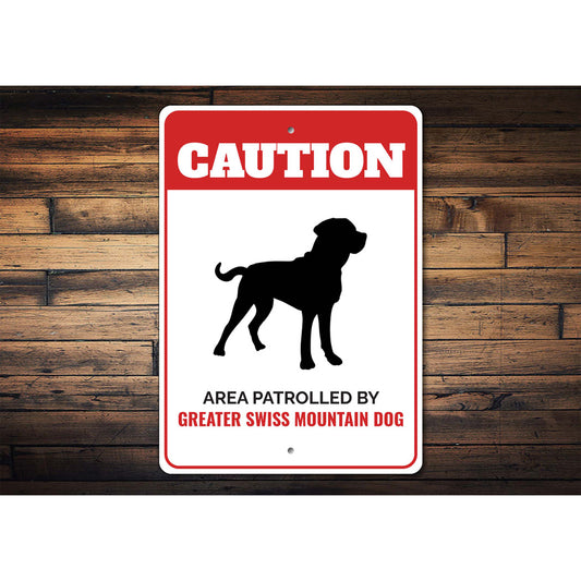 Patrolled By Greater Swiss Mountain Dog Caution Sign
