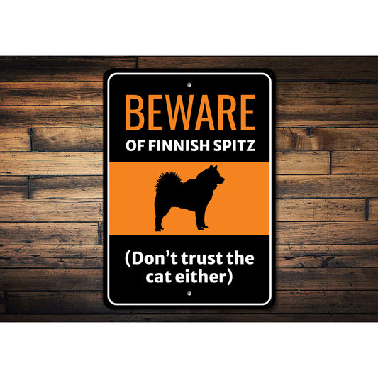 Beware Of Finnish Spitz Dog Don't Trust The Cat Either Sign