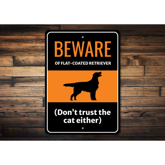 Beware Of Flat Coated Retriever Dog Don't Trust The Cat Either Sign