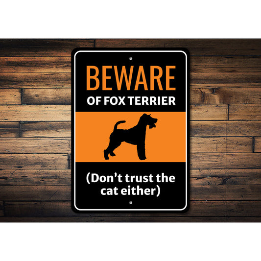 Beware Of Fox Terrier Dog Don't Trust The Cat Either Sign