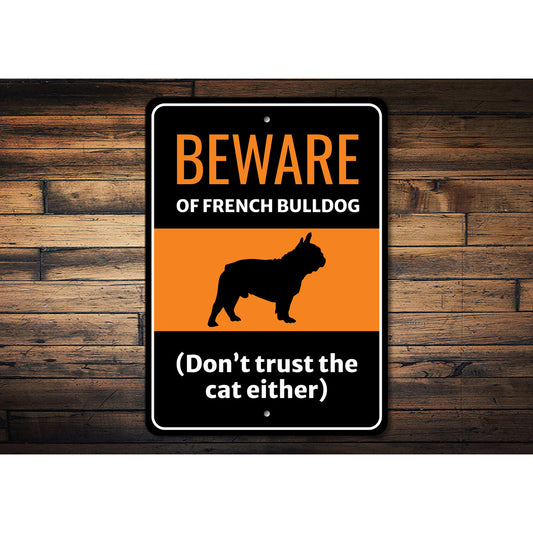 Beware Of French Bulldog Dog Don't Trust The Cat Either Sign