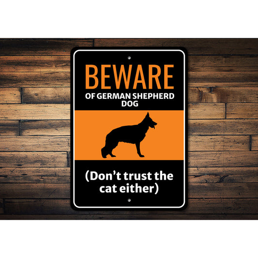 Beware Of German Shepherd Dog Don't Trust The Cat Either Sign
