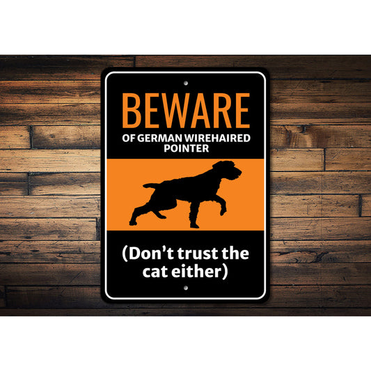 Beware Of German Wirehaired Pointer Dog Don't Trust The Cat Either Sign