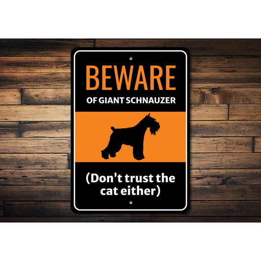 Beware Of Giant Schnauzer Dog Don't Trust The Cat Either Sign