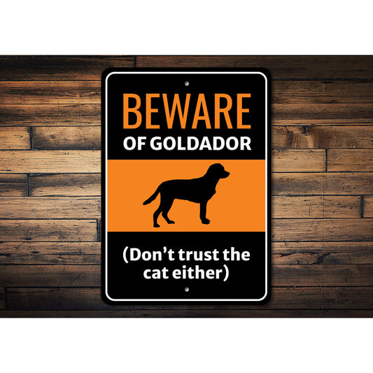 Beware Of Goldador Dog Don't Trust The Cat Either Sign